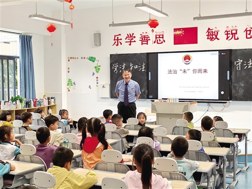 吉首市檢察院“啟明工作室”檢察官李啟明給同學(xué)們上法治教育課。