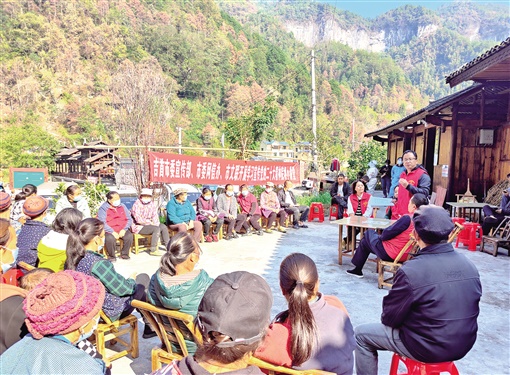 理論宣講志愿服務(wù)隊(duì)深入苗寨宣講黨的二十大精神。