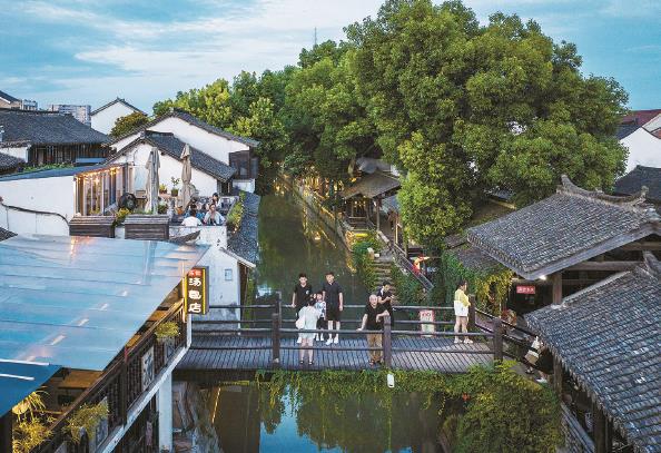 “活的古鎮(zhèn),浦東居民的真實(shí)生活畫卷?!边@是建筑歷史文化保護(hù)專家阮儀三對(duì)新場(chǎng)古鎮(zhèn)的評(píng)價(jià)。和其他江南水鄉(xiāng)不同,“前店中宅、跨水為園”的獨(dú)特布局,折射出當(dāng)年新場(chǎng)大戶人家亦商亦農(nóng)的愜意生活。