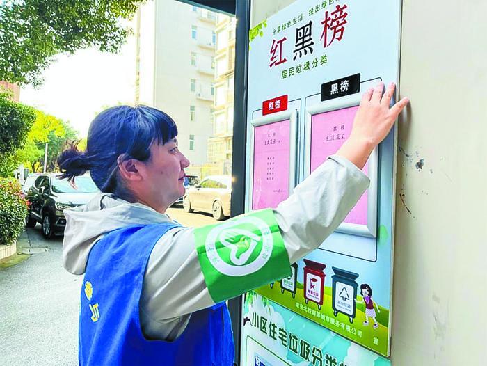 趙以芹是建鄴區(qū)一小區(qū)物業(yè)服務(wù)企業(yè)的保潔主管,也是一名垃圾分類志愿者、指導(dǎo)員,小區(qū)里的孩子親切地稱她為“垃圾分類婆婆”。她每天穿梭在小區(qū)收集房亭周邊,早晨上崗的第一件事就是掀起一個(gè)個(gè)垃圾桶蓋仔細(xì)查看,“部分垃圾是指導(dǎo)員下班后投放的,不知道分得好不好,我得抓緊時(shí)間檢查一下,否則垃圾累積多了,就更不好分了……”趙以芹說(shuō)。每當(dāng)居民來(lái)投放垃圾時(shí),她總是習(xí)慣性地將垃圾袋打開(kāi)仔細(xì)檢查一遍,若發(fā)現(xiàn)混投,會(huì)向居民進(jìn)行分類示范。久而久之,小區(qū)居民基本能做好生活垃圾分類工作。