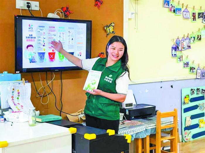 一件舊衣服、一張廢舊紙、一個(gè)舊輪胎……這些被扔掉的“垃圾”,在志愿者、雨花臺(tái)區(qū)家禾齊修幼兒園老師陳二麗以及孩子們的手中,就會(huì)變成一件件小工藝品。陳二麗始終認(rèn)為,家庭是幼兒生活的第一環(huán)境,對(duì)幼兒垃圾分類習(xí)慣的養(yǎng)成具有重要作用。為讓家長(zhǎng)積極參與到垃圾分類中,她通過(guò)晨間談話、家園欄、家委會(huì)以及垃圾分類倡議宣誓等活動(dòng),激勵(lì)家長(zhǎng)自主參與到幼兒園垃圾分類工作的策劃與宣傳中。她還通過(guò)“21天習(xí)慣打卡”引導(dǎo)孩子及家長(zhǎng)每日開(kāi)展垃圾分類行動(dòng),從“知道”轉(zhuǎn)變成“習(xí)慣”。