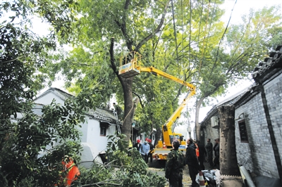 還需要準備什么?需要將樹冠纏繞著的高壓線斷電,需要保證與永恒胡同共用線路的醫(yī)院等單位在斷電時安全過渡……