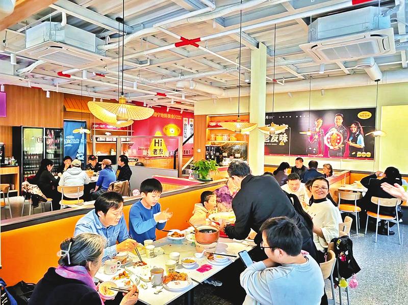 在興寧區(qū)大烏路,一家新開的南寧風(fēng)味餐飲店里,市民與親友相伴用餐。