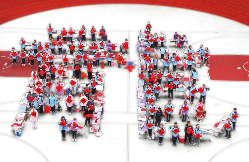 南寧市青秀區(qū)星湖學區(qū)開展“我家春聯(lián)我書寫”活動。在主會場,學生排列成繁體“龍”字等隊形,在書法家們的帶領下?lián)]毫潑墨,寫下翰墨飄香的祝福。(楊春發(fā) 攝)