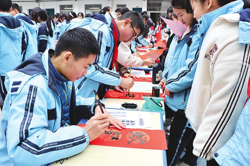 一筆一墨、一橫一豎、一撇一捺,同學們書寫著滿是吉祥祝福的春聯(lián),表達的是新春的祝福和對美好生活的向往。