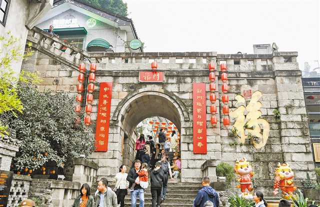 2月14日,游客在重慶市南岸區(qū)龍門(mén)浩老街游覽。新華社發(fā)