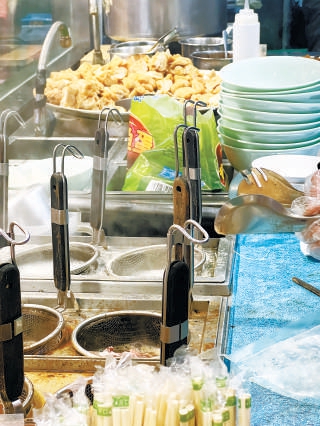 在一家名為“討喜燒牛雜檔”的餐館內(nèi),后廚店員正將一顆顆魚(yú)蛋從一個(gè)綠色商品包裝袋中取出,投入鍋內(nèi)加熱。很快,一碗牛丸魚(yú)蛋面就擺上了餐桌。