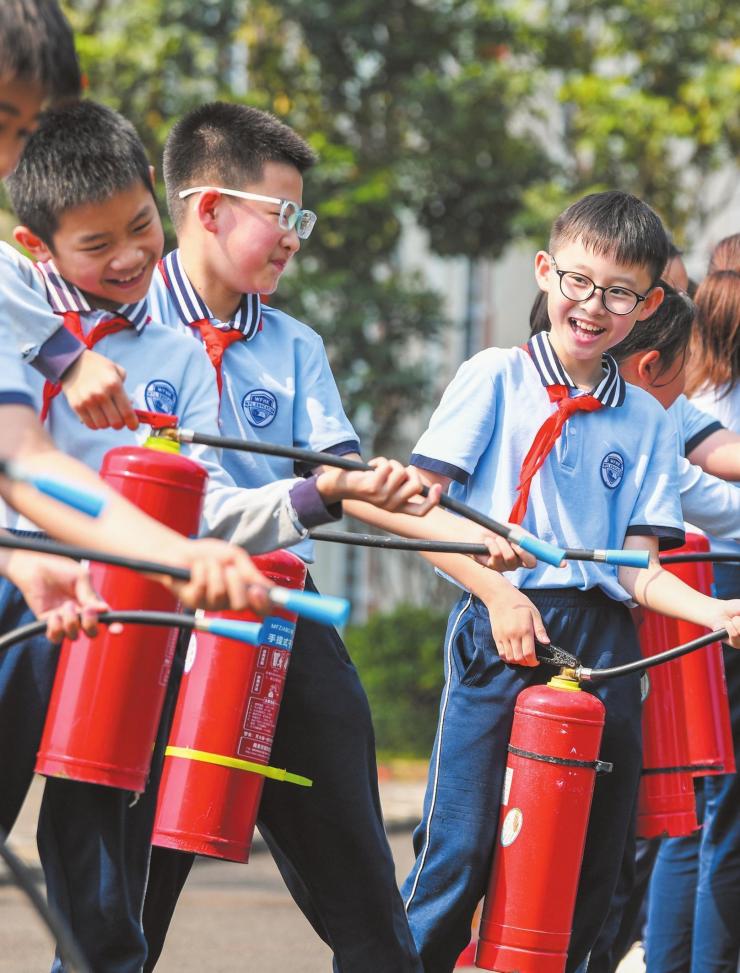 3月6日,學(xué)生們在??谑兄行W(xué)生安全應(yīng)急綜合演練基地參與消防安全應(yīng)急演練。在學(xué)習(xí)使用滅火器環(huán)節(jié),孩子們認(rèn)真學(xué)習(xí),相互交流指正動(dòng)作要領(lǐng)。