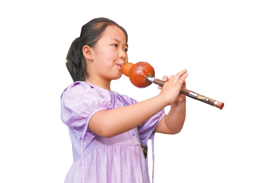 3月20日,小朋友正在龍華區(qū)文化館內(nèi)學(xué)習(xí)吹奏葫蘆絲,豐富課余生活。