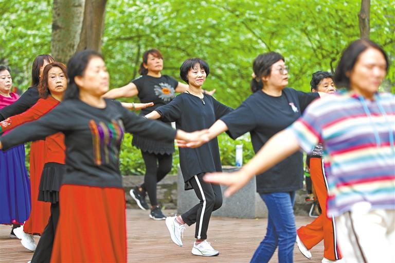 西安長樂公園作為西安市民體育健身的重要場所之一,被譽(yù)為“城市森林公園”。圖為5月7日,市民在西安長樂公園跳廣場舞。 記者 肖陽熠 攝