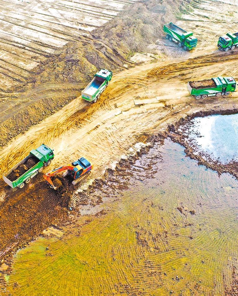 6月17日,施工人員在安徽省宿松縣華陽河蓄滯洪區(qū)建設(shè)工程現(xiàn)場作業(yè)。李龍 攝(中經(jīng)視覺)