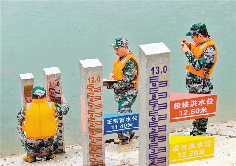 6月19日,在浙江省德清縣楊墳塢水庫水位標(biāo)尺處,工作人員在開展防汛安全隱患排查。謝尚國 攝(中經(jīng)視覺)