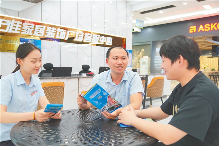 “廣場內(nèi)入駐有近200家商戶,自2022年底成為放心消費(fèi)商圈以來,我們便聯(lián)合商家通過實(shí)行承諾7天無理由退換貨、先行賠付機(jī)制等舉措,不斷優(yōu)化消費(fèi)環(huán)境?!焙D先f佳家居裝飾廣場副總經(jīng)理吳雄介紹。