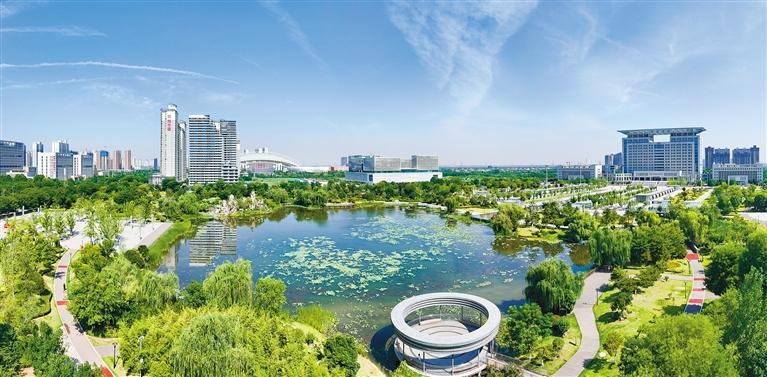 渭南市積極創(chuàng)建國家森林城市,全市林木覆蓋率達(dá)39.4%,中心城區(qū)綠化覆蓋率達(dá)42.1%,人居環(huán)境持續(xù)改善,群眾生活幸福感不斷提高。圖為六月十二日航拍的渭南人民公園。 (通訊員 彭一鵬 攝)