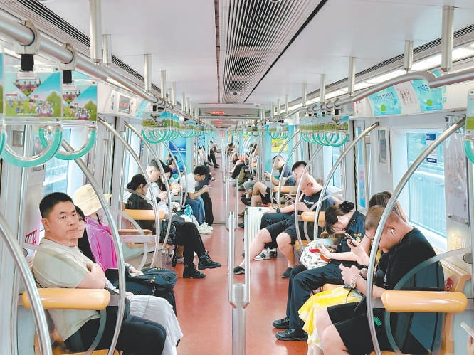 近日,由首都文明辦打造的“文明專列”地鐵列車又一次亮相北京地鐵1號(hào)線、6號(hào)線、10號(hào)線。“讓城市更文明,讓生活更美好”“文明城市大家創(chuàng),文明成果大家享”……朗朗上口的宣傳詞,搭配色彩鮮明的公益海報(bào)和文明行為宣傳畫(huà),帶給乘客沉浸式文明體驗(yàn)。