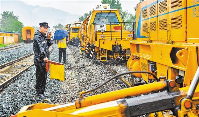 7月26日,遼寧省本溪市突降暴雨,中國鐵路沈陽局集團有限公司沈陽工務機械段的大型養(yǎng)路機械司機冒雨檢修線路,確保鐵路運輸安全。陳明攝(中經(jīng)視覺)