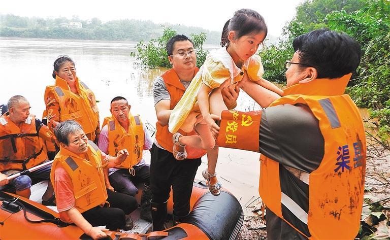 7月12日,四川省渠縣李渡鎮(zhèn)發(fā)生洪澇災害,燈臺社區(qū)的黨員干部在洪水中轉(zhuǎn)移被困群眾。鄧良奎攝(中經(jīng)視覺)
