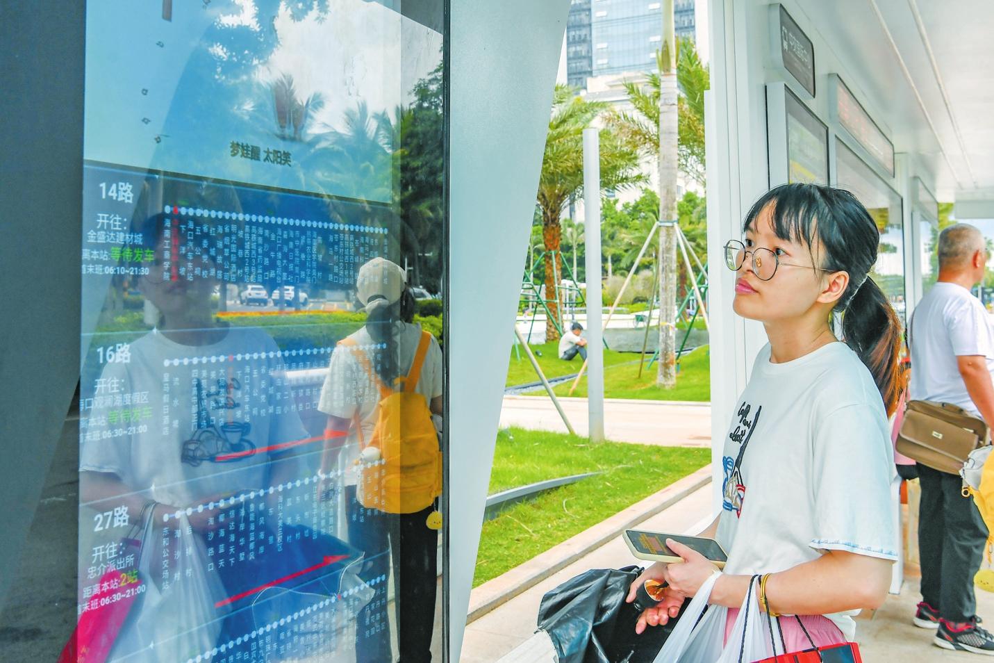日前,海口首座智能一體化公交站臺在中交國際中心公交站全新亮相。在這座外形酷似公交車的站臺里,電子站牌能顯示途經(jīng)該站所有線路車輛的當前位置,有效解決老年人、中小學生不便使用手機App查詢車輛到站信息的問題;候車椅旁邊配有多個USB充電口,以及手機無線充電功能,細微之處提升著市民游客的出行體驗。