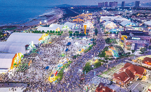 第三十四屆青島國際啤酒節(jié)在青島西海岸新區(qū)金沙灘啤酒城舉行(七月十九日攝)。