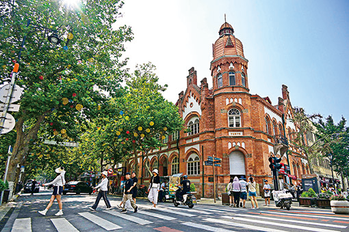 人們?cè)谇鄭u市南區(qū)歷史文化街區(qū)游玩(八月十七日攝)。