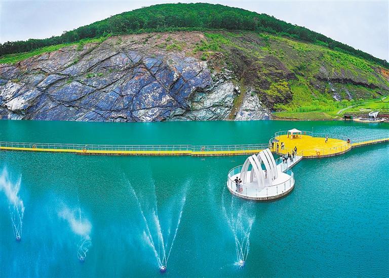 7月27日拍攝的黑龍江省寶清縣翡翠湖礦坑公園。當(dāng)?shù)貙嵭小吧鷳B(tài)綜合修復(fù)+衍生產(chǎn)品植入”的發(fā)展模式,把滿目瘡痍的礦坑及周邊區(qū)域打造成特色生態(tài)休閑公園,激發(fā)旅游產(chǎn)業(yè)潛能。許叢軍 攝(中經(jīng)視覺)