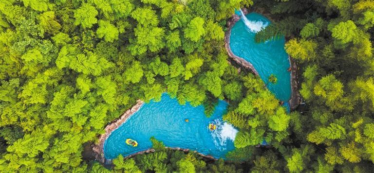 7月11日,浙江省湖州市吳興區(qū)紅里山村,游客在體驗漂流項目。近年來,該區(qū)積極推進(jìn)礦山生態(tài)修復(fù),依托現(xiàn)有林地、草坪、礦坑等自然資源,打造集親水體驗、山地越野、拓展研學(xué)于一體的生態(tài)旅游綜合體。何偉衛(wèi) 攝(中經(jīng)視覺)