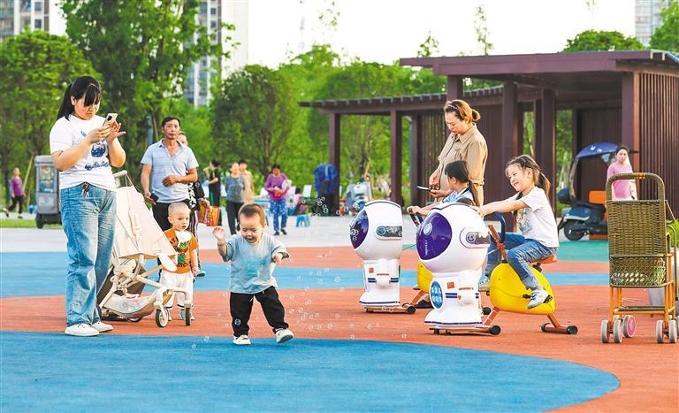 重慶市墊江縣白龍公園,市民在游玩。當(dāng)?shù)匾呀ǔ纱笮」珗@近60個,盤活城市閑置空地,讓“推窗見綠、出門入園”成為城市生活常態(tài),讓市民享受“綠色福祉”。龔長浩 攝(中經(jīng)視覺)