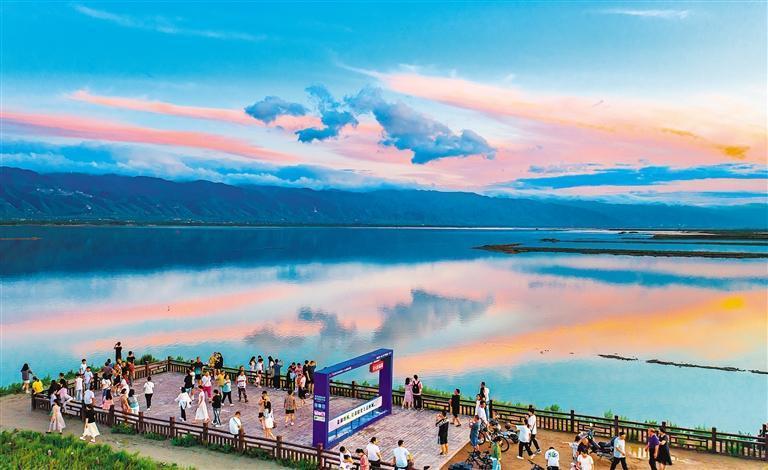 7月19日,山西省運(yùn)城市鹽湖風(fēng)光秀美,吸引各地的游客紛至沓來。近年來,該市不斷加大“退鹽還湖”“還湖于民”生態(tài)修復(fù)力度,把鹽湖從礦區(qū)、工業(yè)區(qū)變?yōu)樯鷳B(tài)保護(hù)區(qū)。閆鑫 攝(中經(jīng)視覺)
