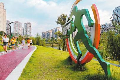 8月18日,市民在成都市麗都運(yùn)動(dòng)公園健身步道健身。