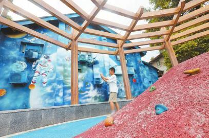 8月22日,資陽市安岳縣時(shí)代廣場(chǎng)濱河路的秦九韶“口袋公園”成為孩子們游戲的樂園。