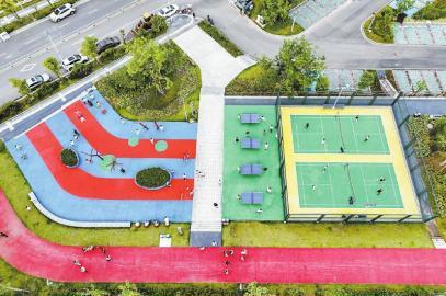 籃球場(chǎng)上、乒乓球桌旁,不少市民揮汗如雨;小廣場(chǎng)上,潮媽潮姐們正跟著節(jié)奏跳廣場(chǎng)舞;高大的棕櫚樹下,市民坐在草地上納涼……8月18日傍晚,成都市區(qū)退去了白天的暑熱,記者走進(jìn)成都市武侯區(qū)麗都運(yùn)動(dòng)公園,看到不少市民正在公園里游玩、健身。這是成都最新打造的“口袋公園”。推窗見綠、出門見景、鳥語花香——這樣的場(chǎng)景在我們身邊隨處可見,大家在觸手可及的“口袋公園”里游玩、健身,享受家門口的“小確幸”。
