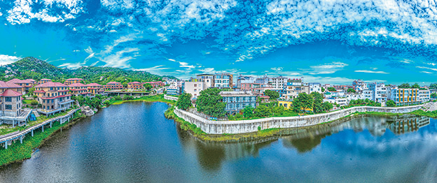 6 月27 日拍攝的廈門(mén)市思明區(qū)濱海街道黃厝社區(qū)塔頭社城中村的水庫(kù)(無(wú)人機(jī)拼接照片)。新華社記者 周義 攝