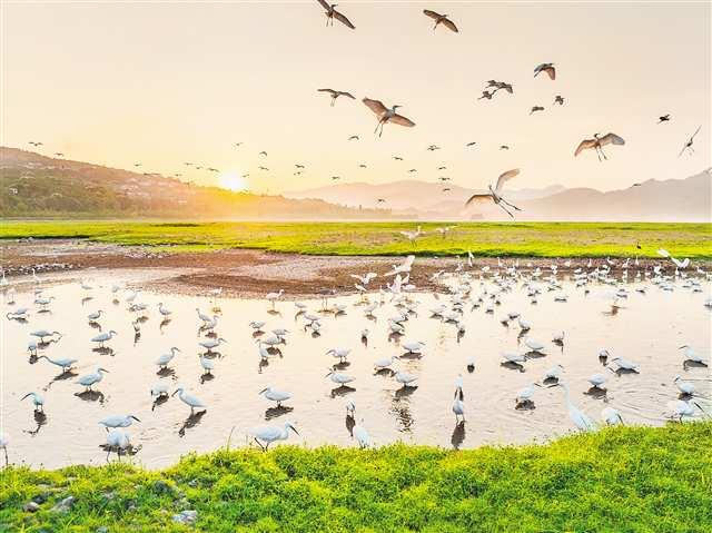 9月7日,重慶市開州區(qū)漢豐湖國(guó)家濕地公園,優(yōu)美的生態(tài)環(huán)境,吸引了眾多鷺鳥來(lái)此覓食、追逐、嬉戲。