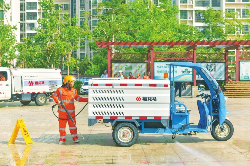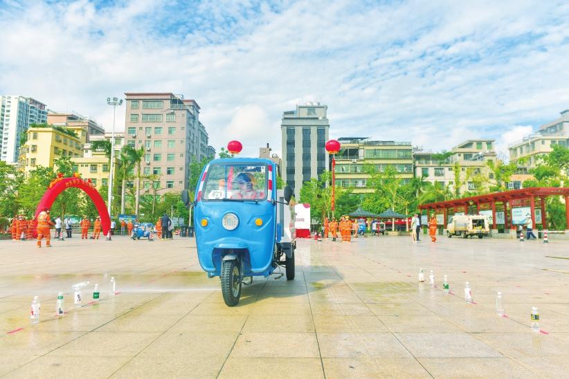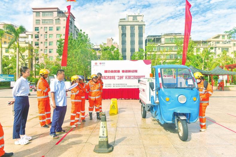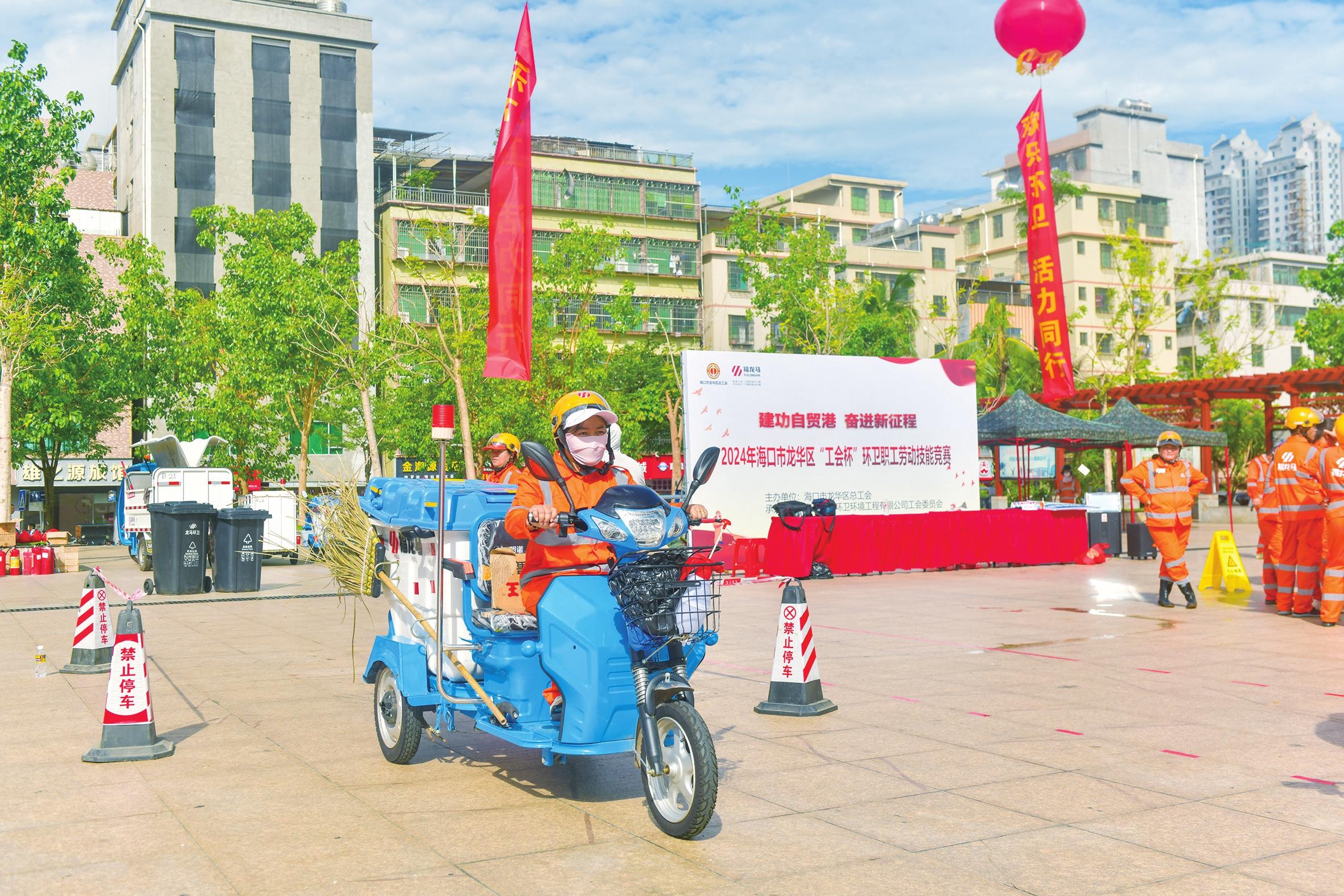 10月18日,海口市龍華區(qū)雙創(chuàng)廣場(chǎng)上熱鬧非凡,福龍馬??诠窘倜h(huán)衛(wèi)工人在進(jìn)行技能比賽。他們激情四射,將自己最好的狀態(tài)、精湛的技術(shù)展現(xiàn),贏得了陣陣歡呼。