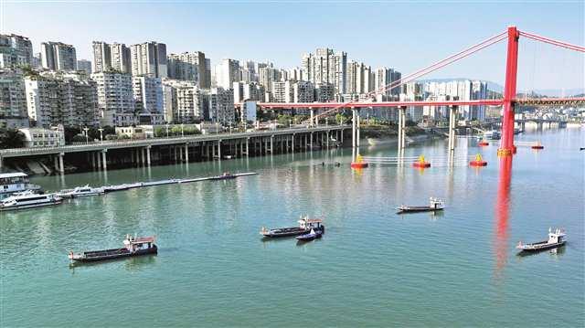 近日,數(shù)艘清漂船通過長江忠縣長江大橋段。