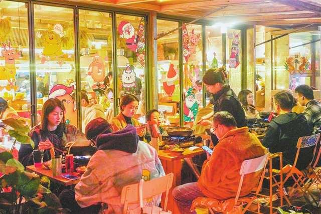 渝北區(qū)紫薇路商業(yè)街,市民在用餐。記者 崔力 攝\視覺(jué)重慶