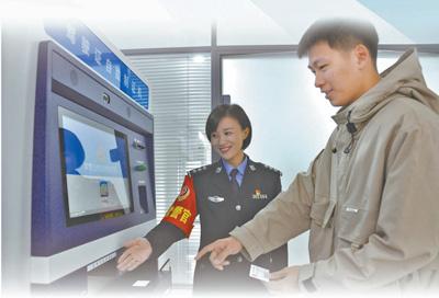 在天津市公安局南開分局向陽(yáng)路派出所,民警幫助群眾通過(guò)駕駛證自助制證機(jī)辦理相關(guān)業(yè)務(wù)。