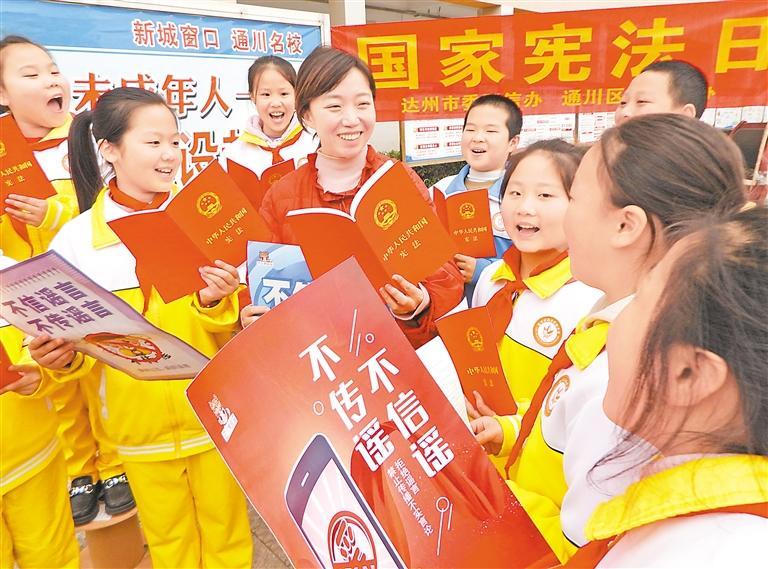 12月3日,在四川省達州市通川區(qū)羅江鎮(zhèn)魏興實驗學校,普法志愿者給學生講解憲法知識。今年12月4日是第十一個國家憲法日,各地開展形式多樣的活動普及憲法知識,宣傳法治觀念。2024年“憲法宣傳周”活動主題為“大力弘揚憲法精神,推動進一步全面深化改革”,時間為12月1日至7日。新華社發(fā)