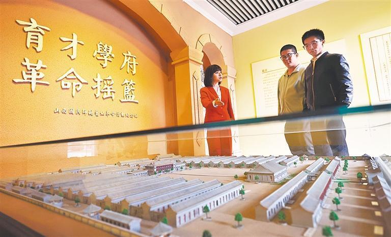 11月7日,山西國(guó)民師范舊址革命活動(dòng)紀(jì)念館,講解員為觀眾講述革命歷史。