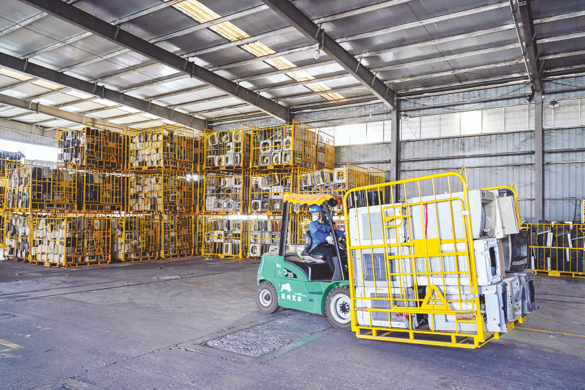 “工廠現(xiàn)在擁有廢舊電視機、廢舊洗衣機、廢舊空調(diào)、廢舊冰箱、廢舊電腦等多條拆解線,能滿足多種廢棄電器電子產(chǎn)品的拆解需求,每條拆解線單日可拆解舊設(shè)備超過1600臺?!瘪T克亮自豪地向記者介紹,自建廠以來,已累計回收處理廢棄電器、電子產(chǎn)品1000多萬臺,產(chǎn)出回收廢金屬、廢塑料、廢玻璃等可再生資源22萬噸。