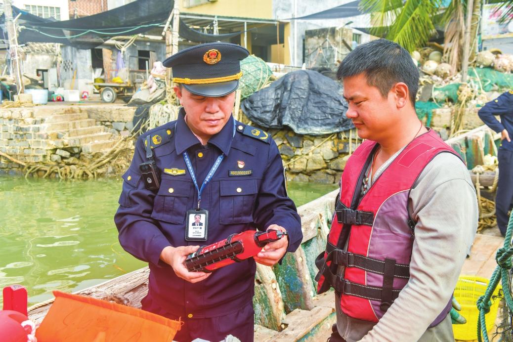 冬季的暖陽灑在湛藍(lán)的海面,一艘艘滿載的漁船徐徐歸港,漁民們的歡笑聲中洋溢著豐收的喜悅,正是一幅欣欣向榮的漁村畫卷。12月3日,??谑芯C合行政執(zhí)法局海洋和漁業(yè)行政執(zhí)法支隊(duì)(以下簡(jiǎn)稱支隊(duì))的執(zhí)法人員來到??谑忻捞m區(qū)三聯(lián)村委會(huì),開展?jié)O業(yè)安全生產(chǎn)檢查和指導(dǎo)。