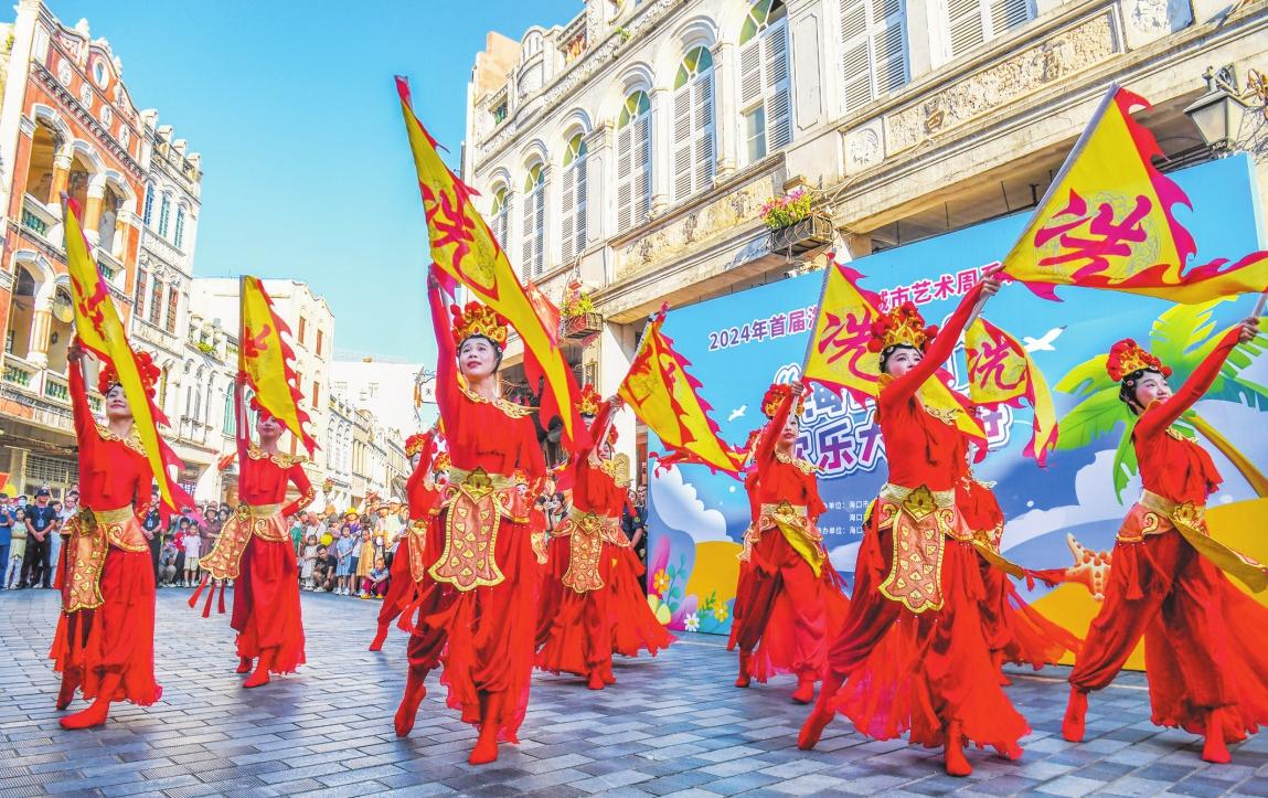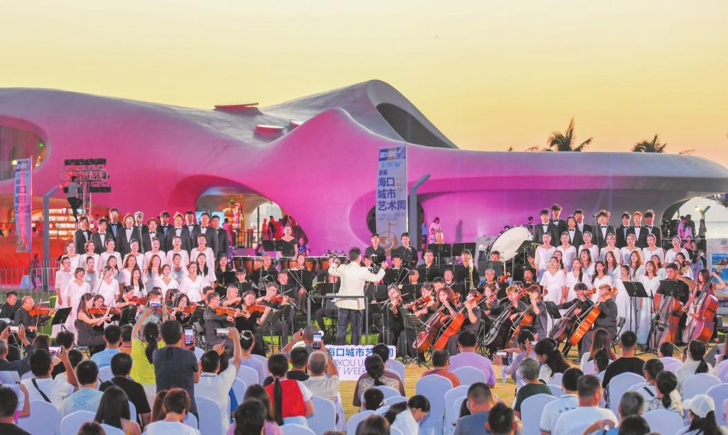 文化藝術(shù)如何飛入尋常百姓家?首屆??诔鞘兴囆g(shù)周期間,八方來客如約而至,??谟靡粓鰣鼍始姵实奈幕⒀缈畲e客。聽一場交響樂,看一次書畫展,逛一回民族服飾展……高雅藝術(shù)走出大廳,走近群眾身邊,點亮市民生活,街頭巷尾成為了??诔鞘形幕皶蛷d”,展現(xiàn)椰城獨特的城市風(fēng)情和文化底蘊。