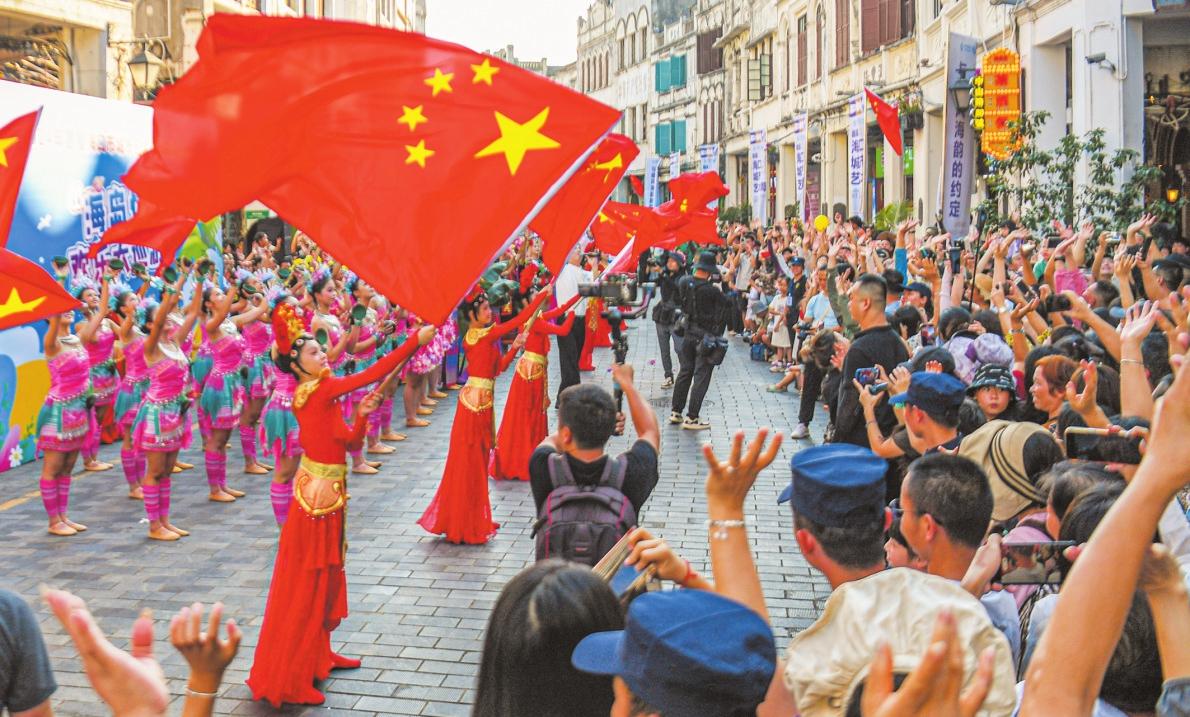 10月4日,“海島情”歡樂大巡游在??隍T樓老街上演。 記者 康登淋 攝