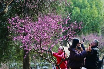 二月三日是立春節(jié)氣,古林公園內(nèi)梅花爭(zhēng)相開放,吸引市民游客前來(lái)賞花。