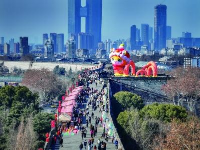 賞燈游園是春節(jié)必不可少的元素。今年的燈彩展示技術(shù)更先進(jìn)、制作材料更多元,全息影像、無(wú)人機(jī)、玻璃鋼等現(xiàn)代元素與傳統(tǒng)文化交融,彰顯了非凡魅力。玄武湖、歡樂(lè)谷、棲霞山景區(qū)等地舞龍舞獅熱鬧巡游,伴隨著歡騰的鼓樂(lè)節(jié)奏,盡情釋放著慶祝新年到來(lái)的喜悅。