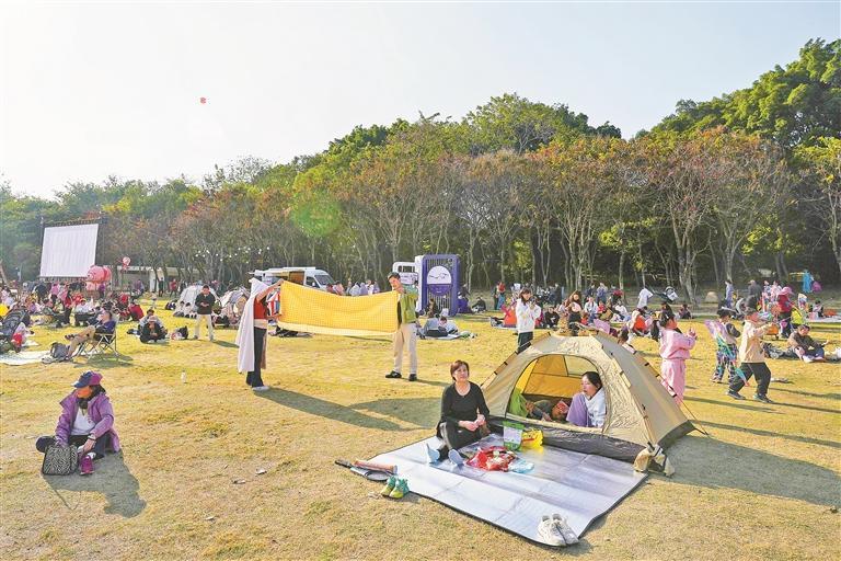 春節(jié)假期,市民在蓮花山公園露營(yíng),享受陽(yáng)光。記者 嚴(yán)文婷 攝
