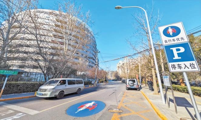 改造后的碧湖居南路設(shè)置路側(cè)停車(chē)位,增加自行車(chē)優(yōu)先指示牌,規(guī)范交通出行。