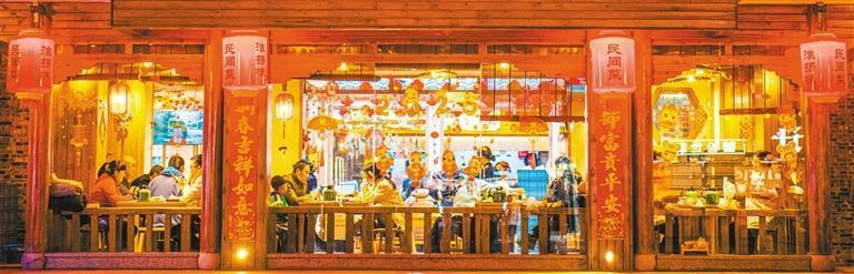 2月20日,江蘇省揚(yáng)州市廣陵區(qū)東關(guān)街,市民和游客在品嘗當(dāng)?shù)孛朗?。近年?lái),該市持續(xù)打造集夜食、夜購(gòu)、夜游等于一體的“夜間經(jīng)濟(jì)”精品街區(qū)。徐江海 攝(中經(jīng)視覺)