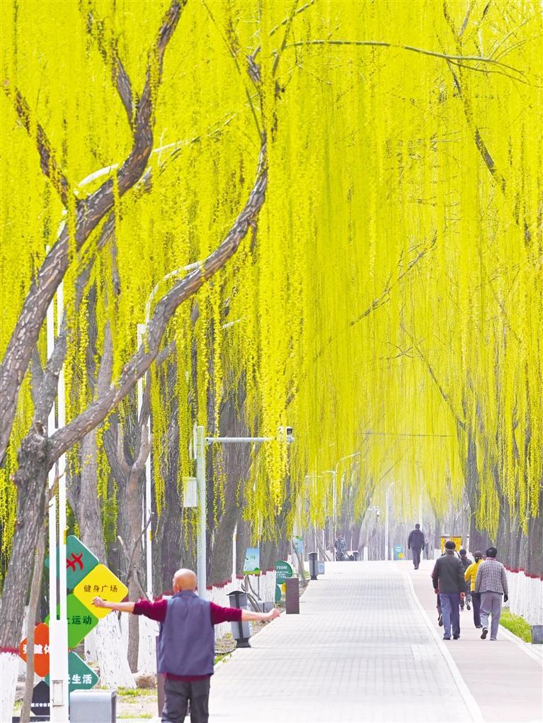 4月5日,銀川唐徠渠畔垂柳依依,市民漫步其間,享受大好春光。 記者 左鳴遠 攝