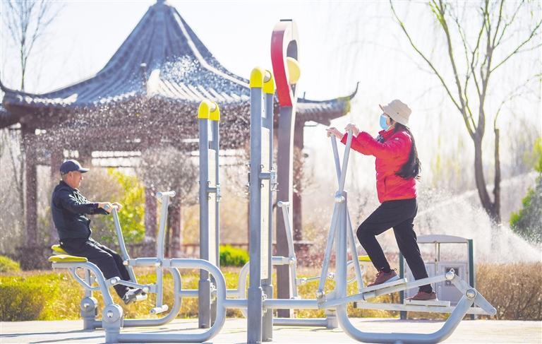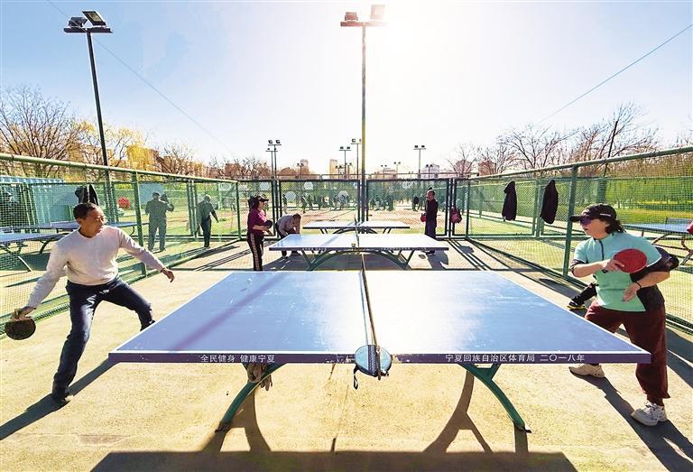 4月5日,市民在銀川毓秀公園打乒乓球。當日,該公園迎來許多晨練市民,運動的人們成為假日清晨的亮麗風景。記者 馬楠 攝